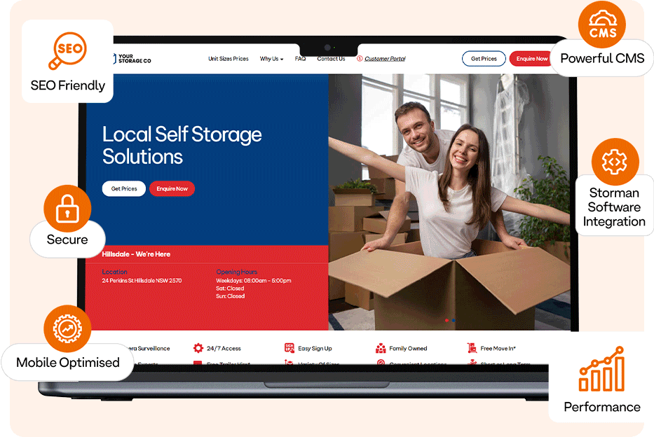 Generate leads, get more move ins and maximise the financial performance of your store with StorNow self storage website templates and custom designs.